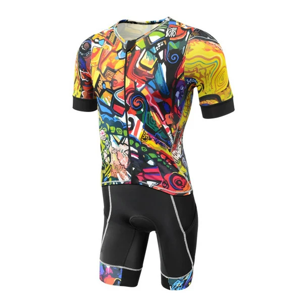 This is the triathlete’s version of the one-piece skinsuits worn by the Gran Tour riders. The top and bottom separate with a full-front zipper, to reveal a high waisted short that is suspended by the side and back panels, just like a bibshort. This Trisuit comes with a 7mm pad.